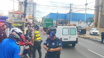 Operação de fiscalização orienta motociclistas e reforça segurança viária na Praça Santa Cruz, em Araraquara