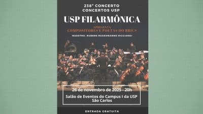 Concerto está programado para o dia 26, quarta-feira, às 20h, no Salão de Eventos do Campus USP – Área 1, com entrada livre e gratuita
