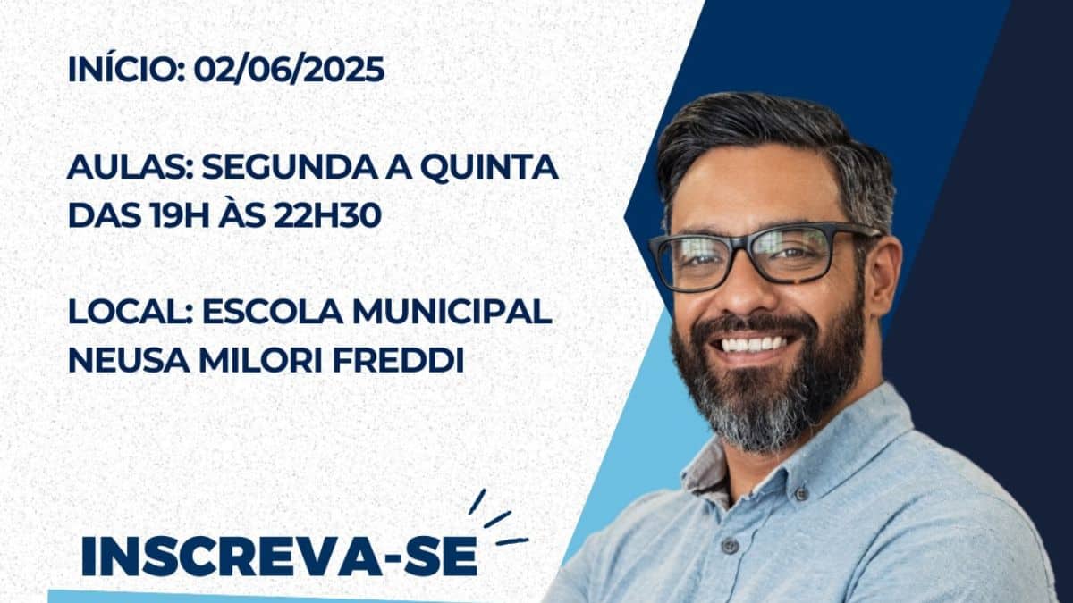 Com carga horária de 160 horas, o curso será ministrado de 2 de junho a 27 de agosto de 2025, de segunda a quinta-feira, das 19h às 22h30 e as inscrições podem ser feitas presencialmente no Paço Municipal.