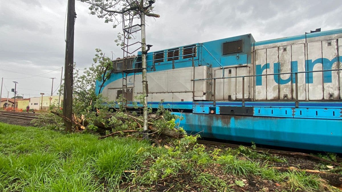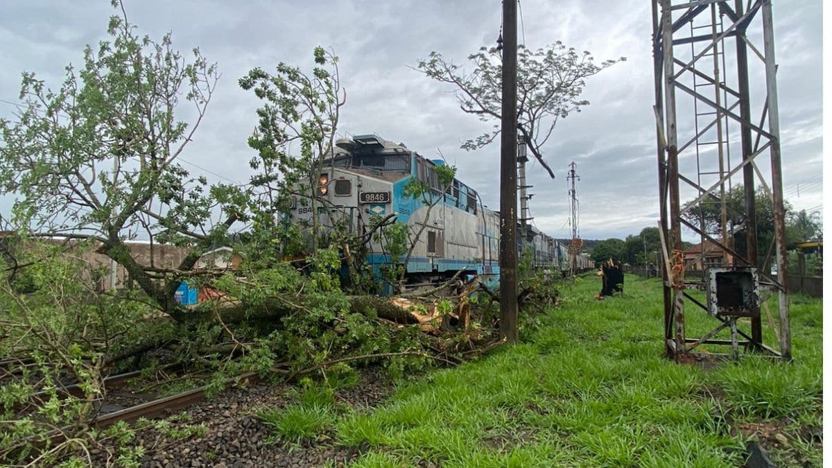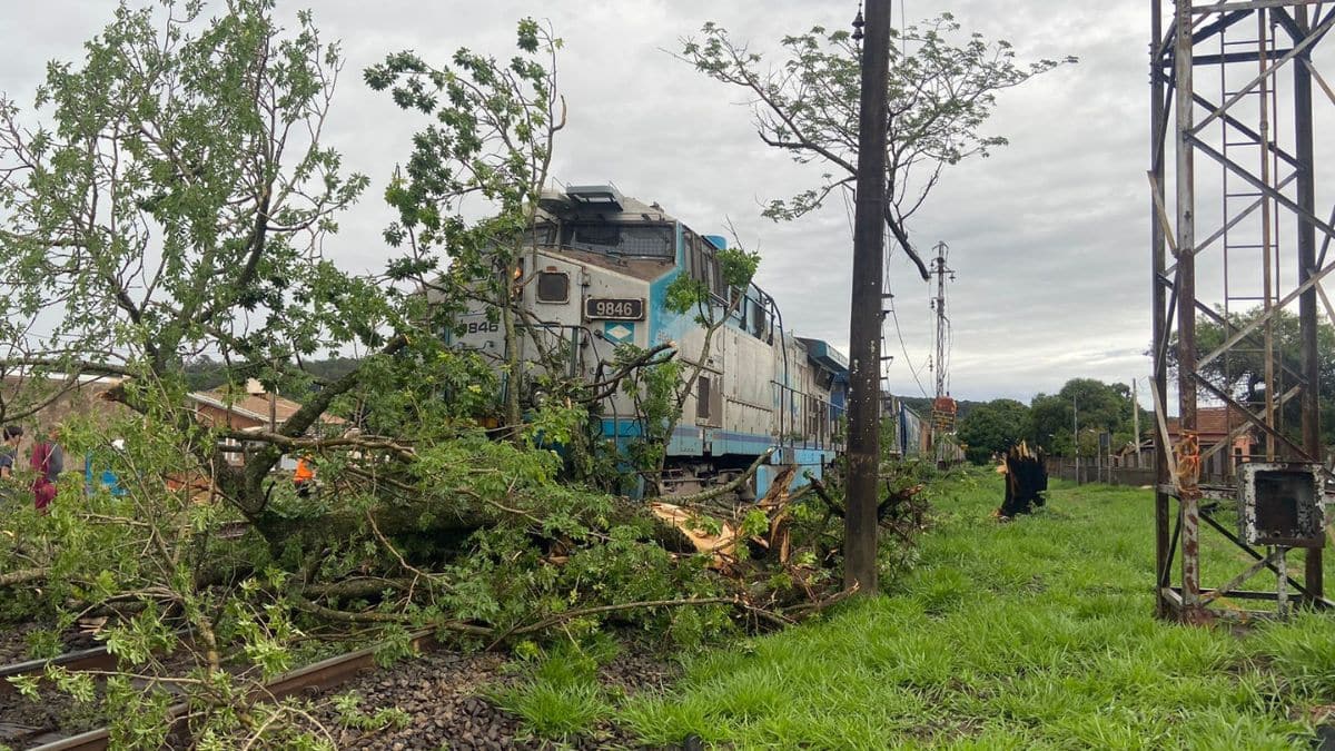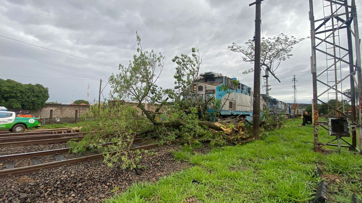Por volta das 15h deste domingo (2), uma forte chuva atingiu Itirapina e provocou a queda de uma paineira com mais de 80 anos sobre a linha férrea, no momento em que um trem passava pelo local. O impacto interrompeu bruscamente o trajeto da composição, que ficou imobilizada sobre os trilhos.