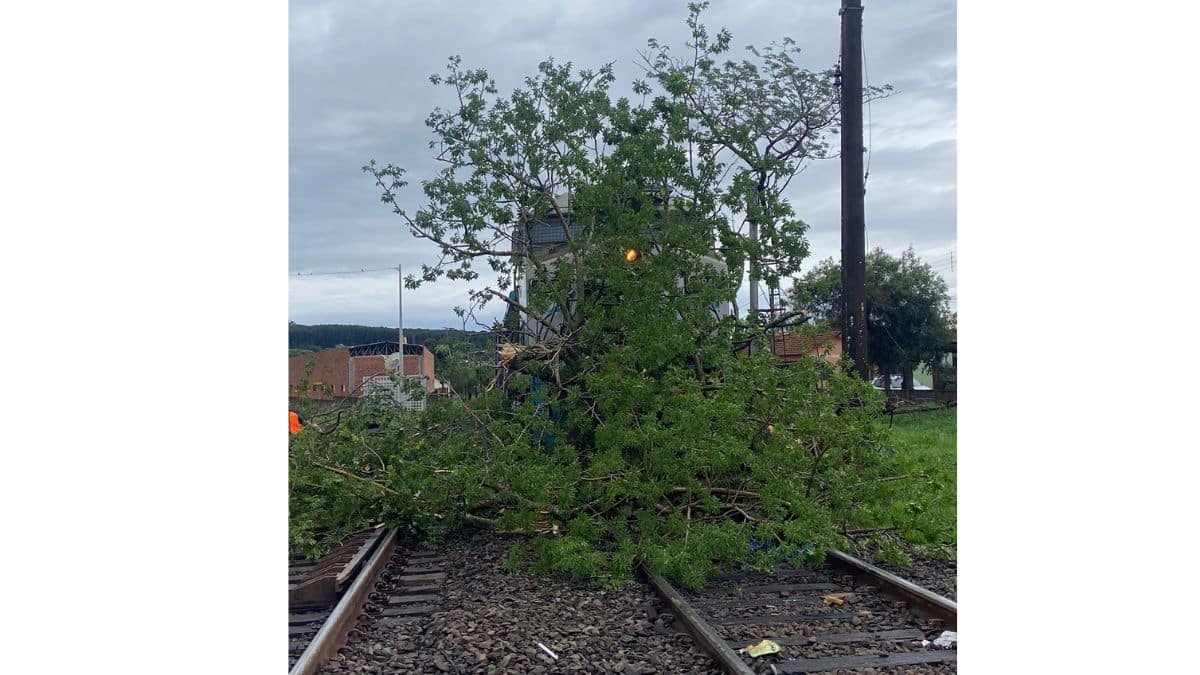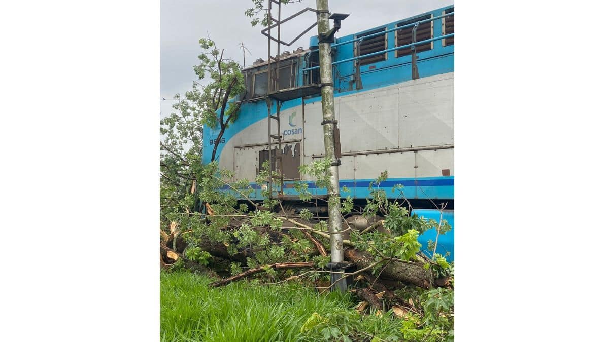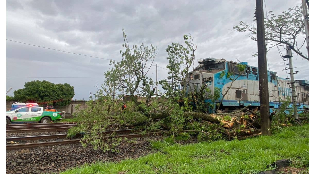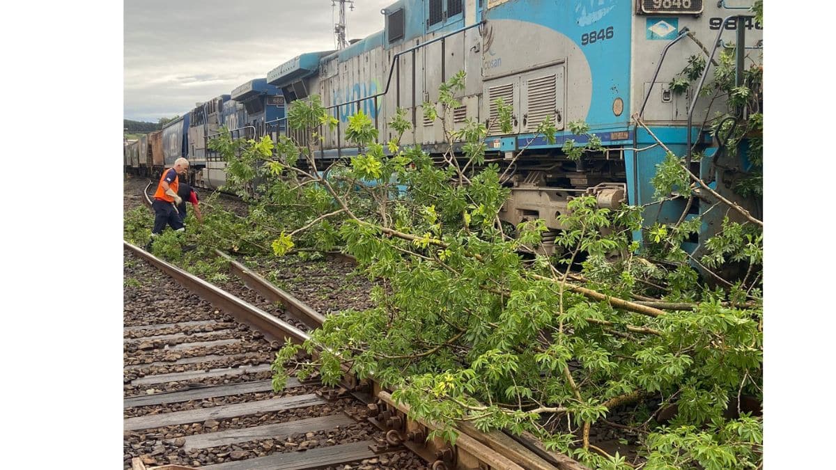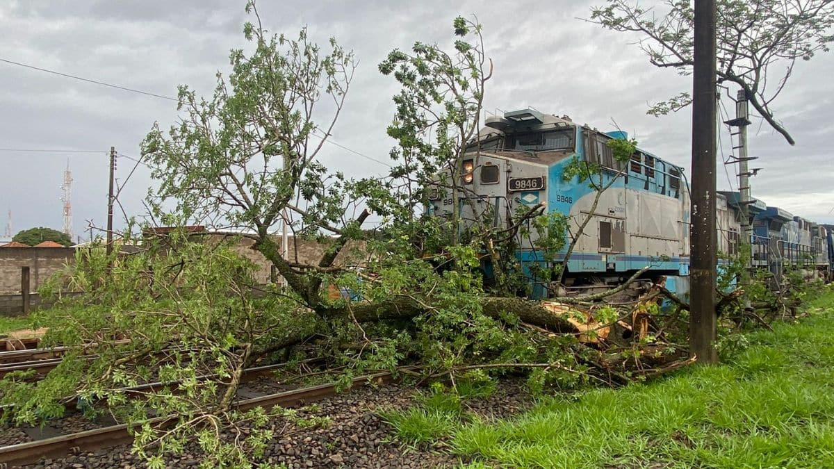 Por volta das 15h deste domingo (2), uma forte chuva atingiu Itirapina e provocou a queda de uma paineira com mais de 80 anos sobre a linha férrea, no momento em que um trem passava pelo local. O impacto interrompeu bruscamente o trajeto da composição, que ficou imobilizada sobre os trilhos.