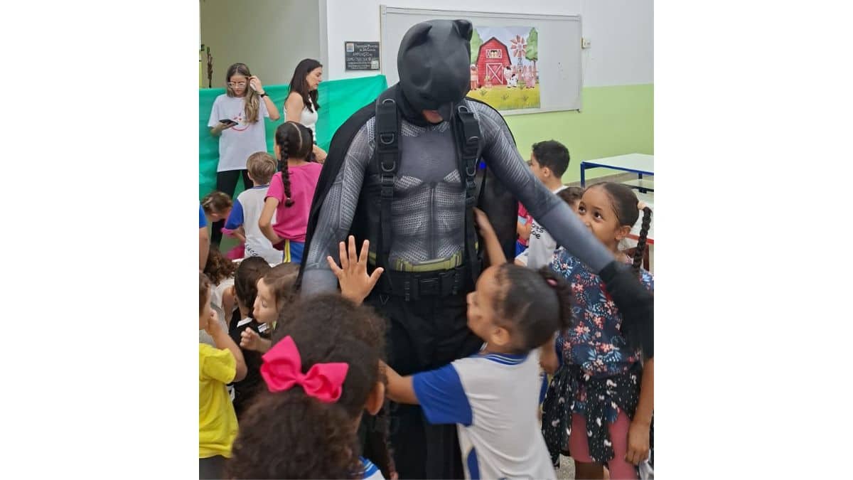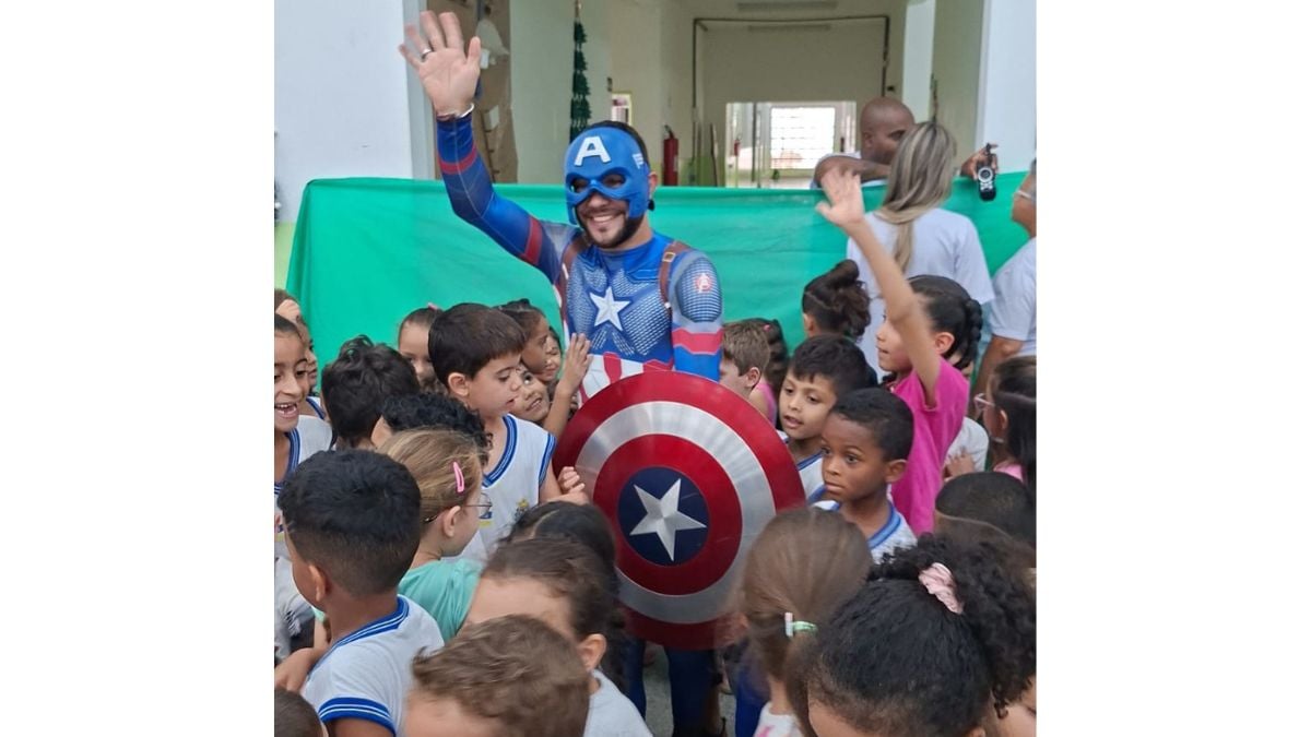 O Projeto SuperAção, formado por voluntários que não vestem capas no dia a dia, mas carregam um coração gigante, chegou às escolas levando mais que doces, pirulitos e balas. Levou afeto. Levou presença. Levou atenção. Levou aquele tipo de cuidado que não se compra, não se aprende, não se improvisa — apenas nasce de dentro, de quem tem a alma inclinada a fazer o bem sem perguntar a quem.