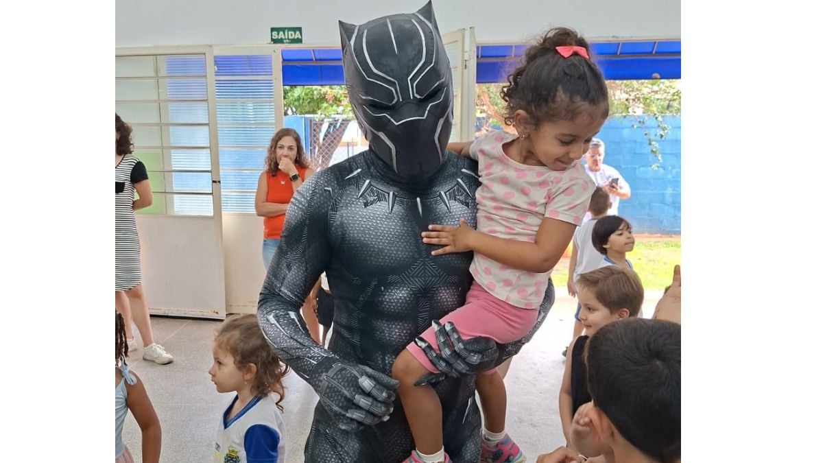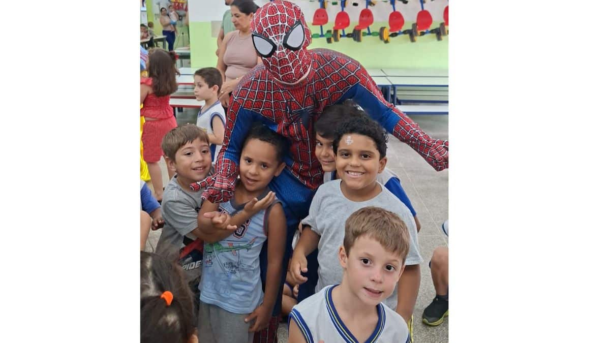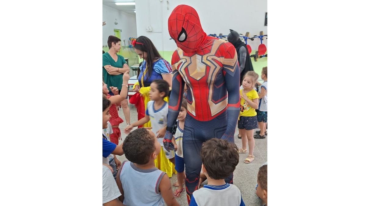 E, como numa história que mistura fantasia com realidade, o pátio foi ocupado por personagens que ganharam vida. Papai Noel, com seu andar calmo e olhar brilhante. Branca de Neve, delicada e sorridente. O Homem-Aranha, sempre disposto a acenar e se abaixar para abraços pequenos. Capitão América, com sua postura de herói que protege. Pantera Negra, carregando a força simbólica que tantas crianças admiram. E tantos outros personagens que surgiram não apenas fantasiados, mas encarnados, como se tivessem saído diretamente dos contos, filmes e sonhos infantis.