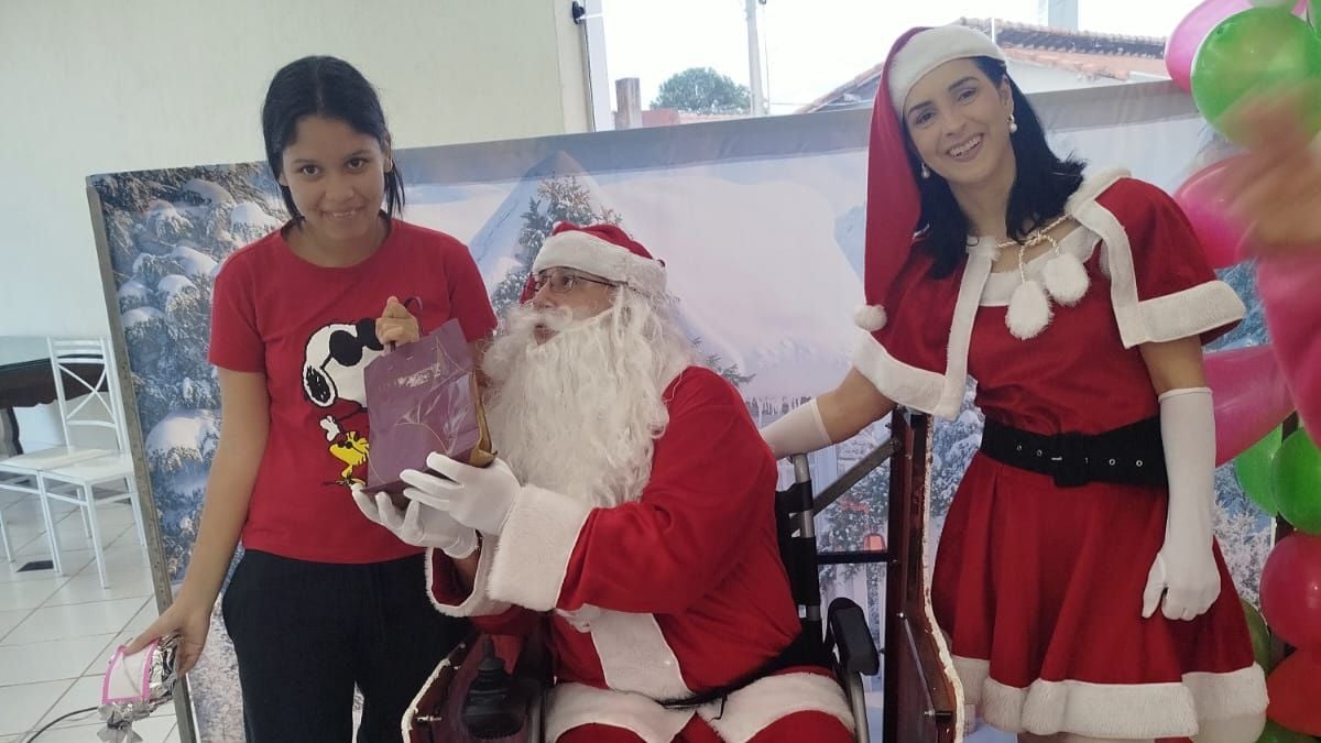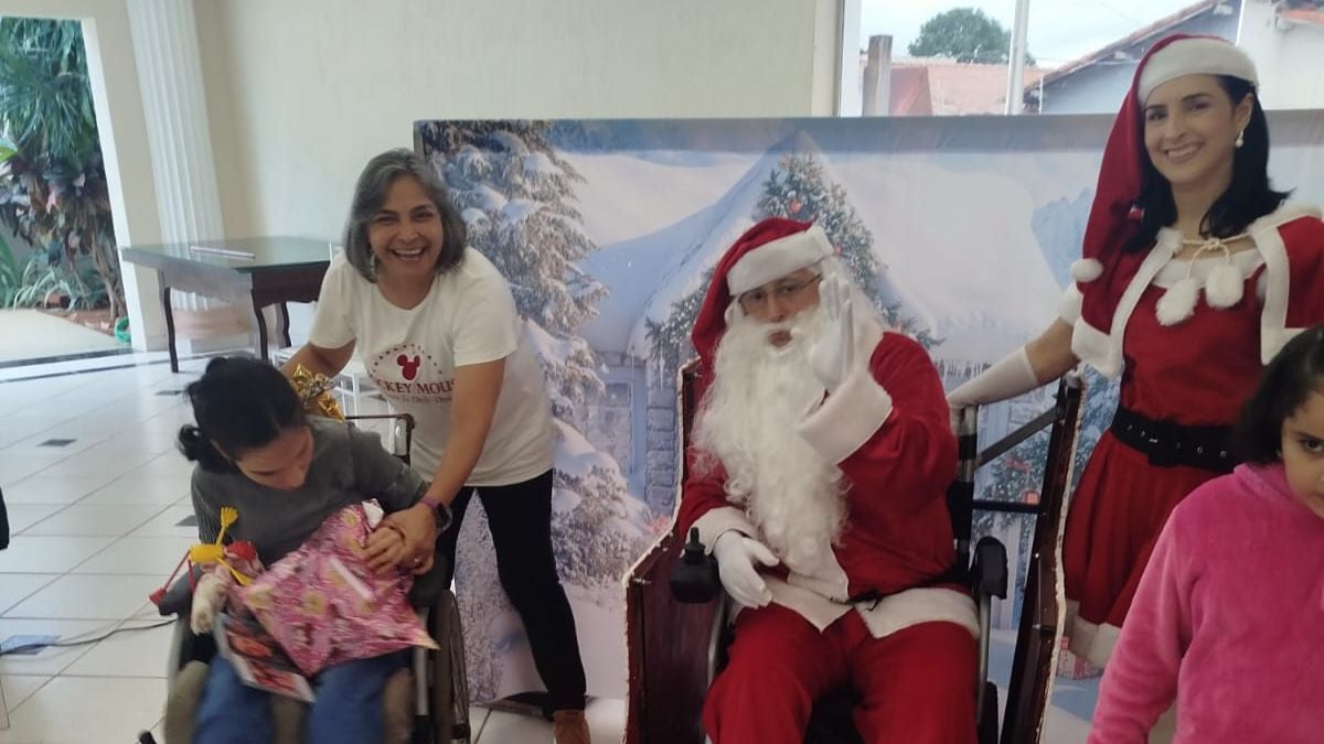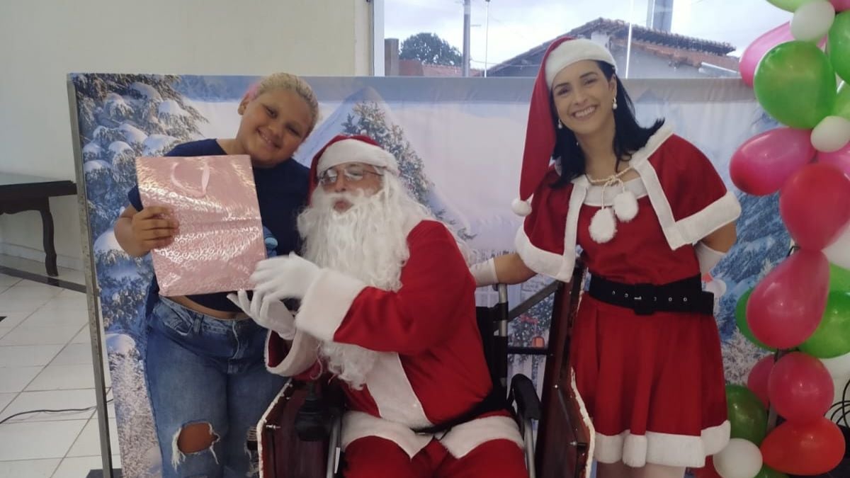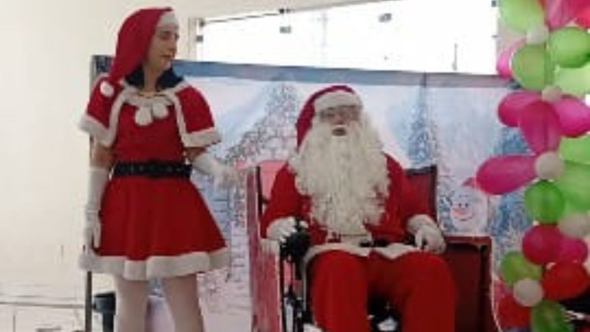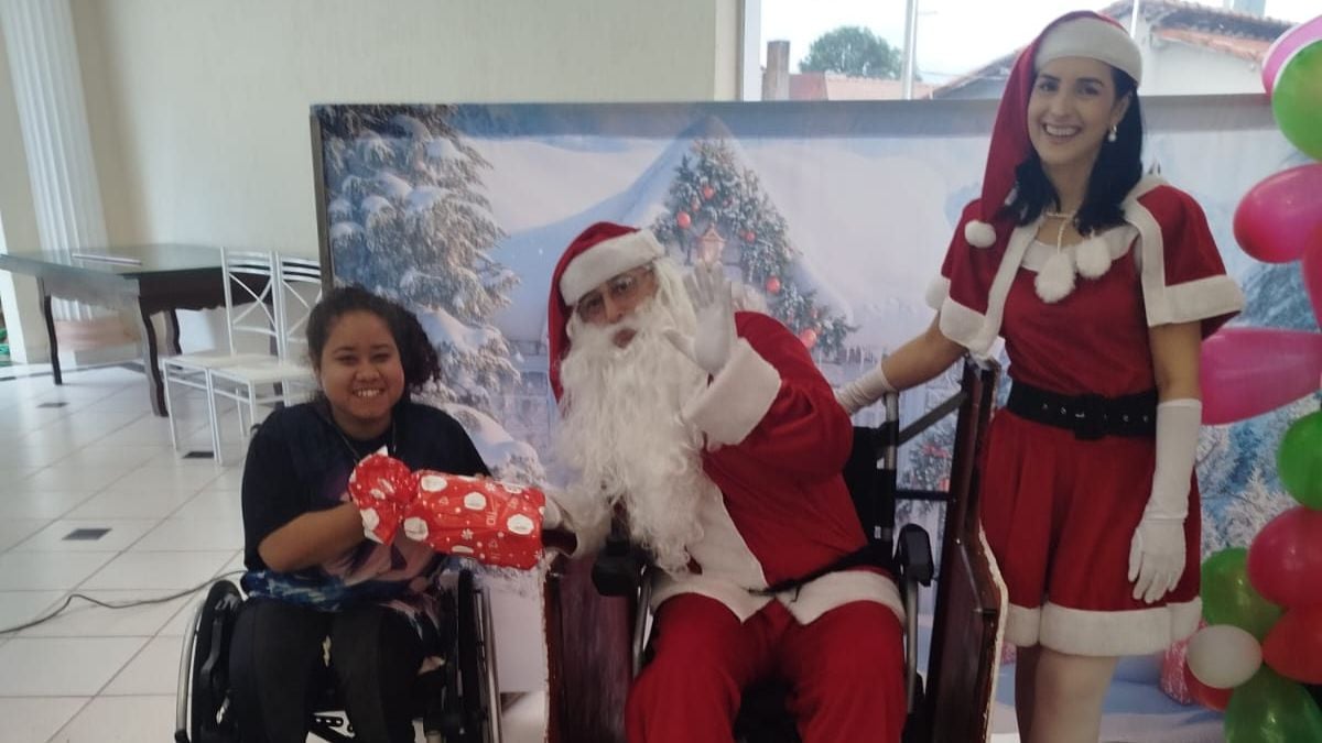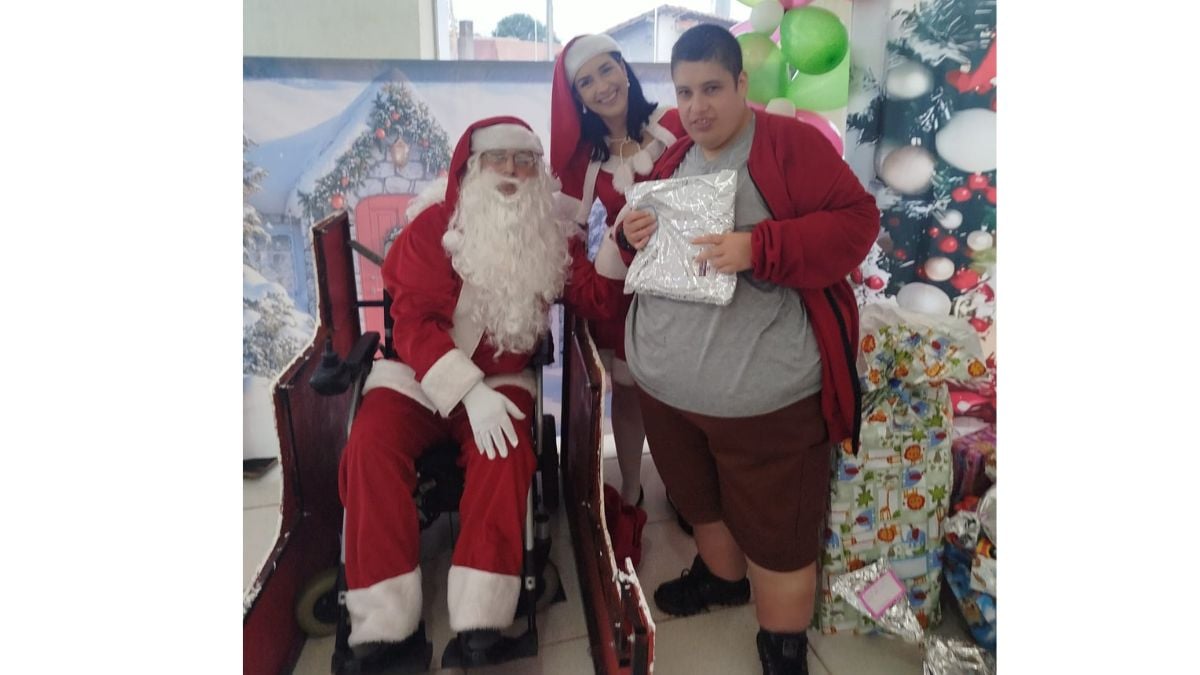 O momento mais aguardado foi a chegada do Papai Noel cadeirante e da Mamãe Noel, que entregaram os presentes e arrancaram sorrisos de todos os presentes, reforçando a mensagem de inclusão e empatia.