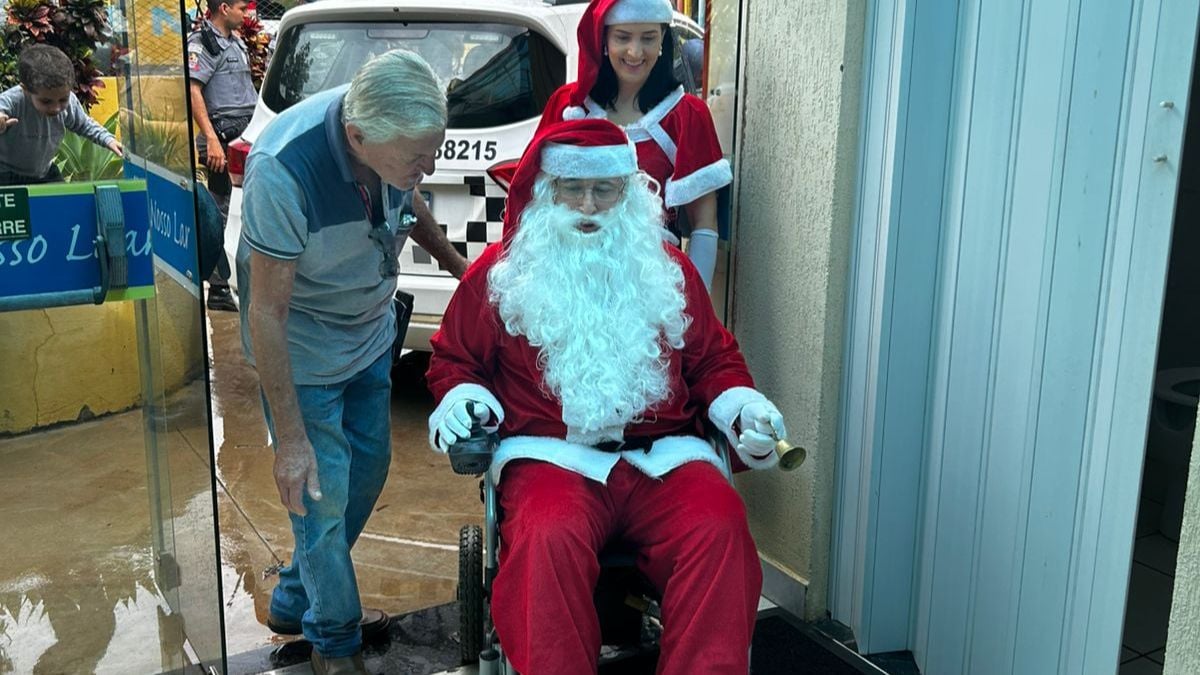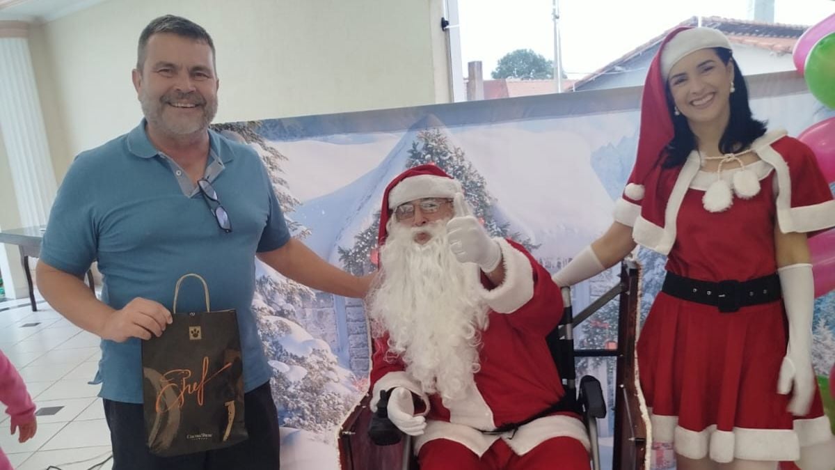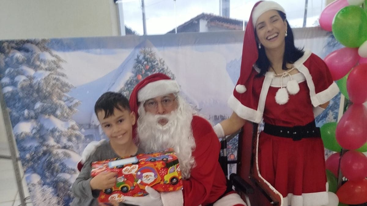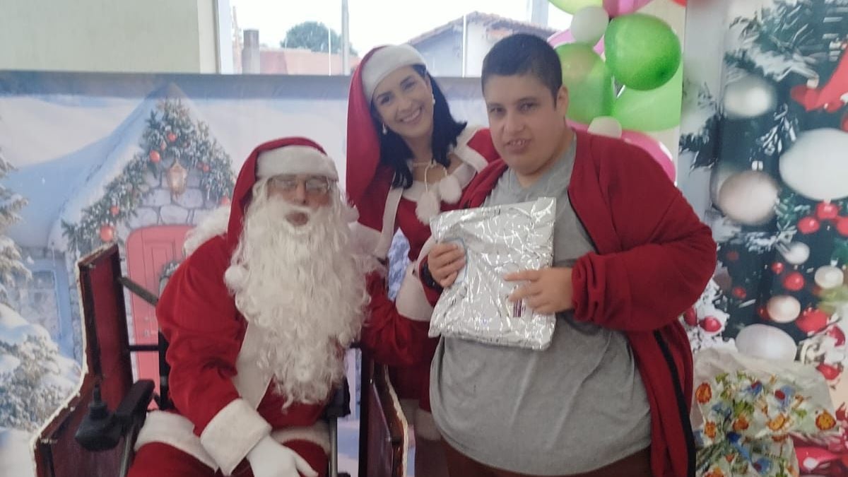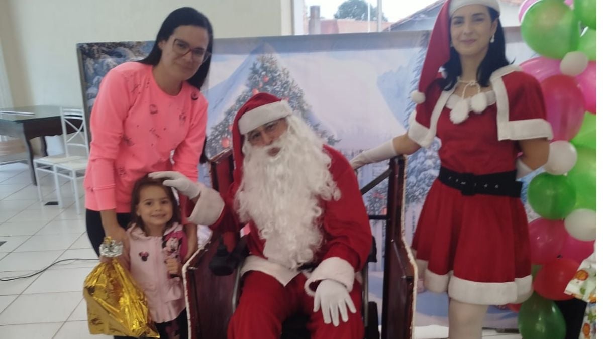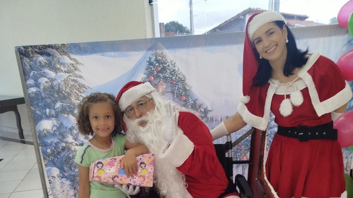 O momento mais aguardado foi a chegada do Papai Noel cadeirante e da Mamãe Noel, que entregaram os presentes e arrancaram sorrisos de todos os presentes, reforçando a mensagem de inclusão e empatia.