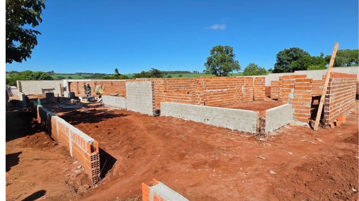 A construção do novo prédio do Centro Municipal de Educação Infantil (Cemei) “Dionísio da Silva”, no distrito de Santa Eudóxia, segue em ritmo acelerado e já entrou na fase de elevação das paredes, após a conclusão da etapa de fundação.