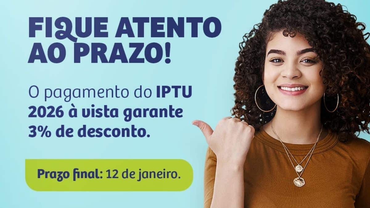 Para acessar o IPTU 2026, basta clicar na guia “Cidadão” e, em seguida, em “IPTU”. O documento também está disponível na “Central de Serviços”, no link “2ª via do IPTU”, na página inicial do site.