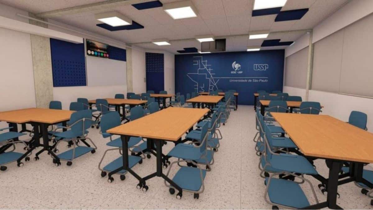 Outro projeto que está em fase de implantação é o da Escola de Engenharia de São Carlos (EESC), que vai reestruturar 50 salas e auditórios, com equipamentos e mobiliário adequados para proporcionar ambientes mais versáteis e compatíveis com a aplicação de metodologias ativas, que favoreçam a integração entre teoria e prática e a interdisciplinaridade.