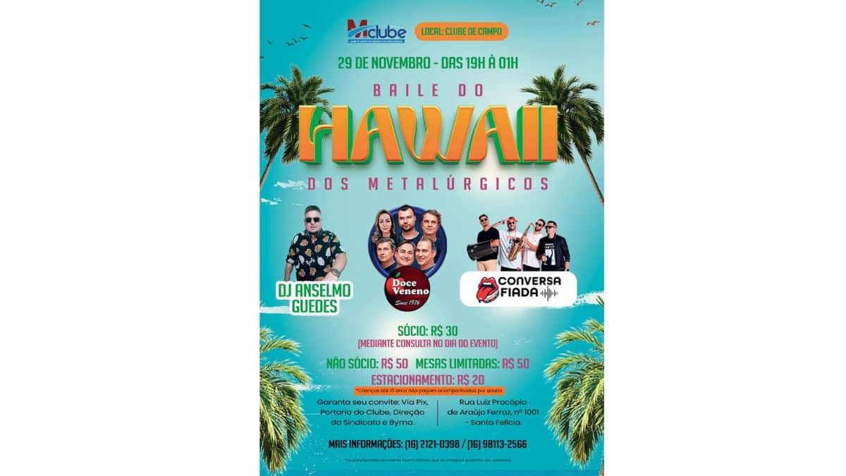 A Festa mais esperada está de volta, o Baile do Hawaii dos Metalúrgicos de São Carlos e Ibaté. Na sua 3ª edição, traz uma festa linda, com decoração temática, mesa de frutas para encantar os sócios e não sócios.