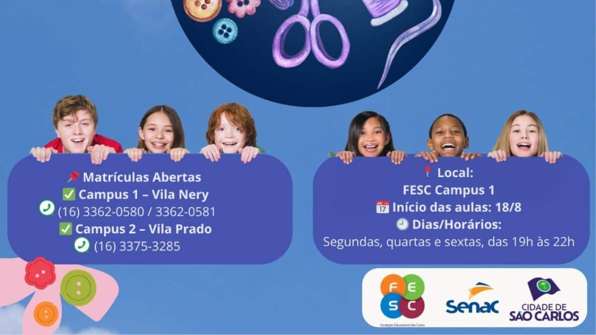 A Fundação Educacional São Carlos (Fesc), em parceria com o Senac e a Prefeitura Municipal, está com inscrições abertas para o curso gratuito de Moda Infantil. A matrícula poderá ser realizada a partir desta terça-feira, dia 29 de julho, no Campus 1 da Fesc, localizado na rua São Sebastião, 2.828, na Vila Nery.