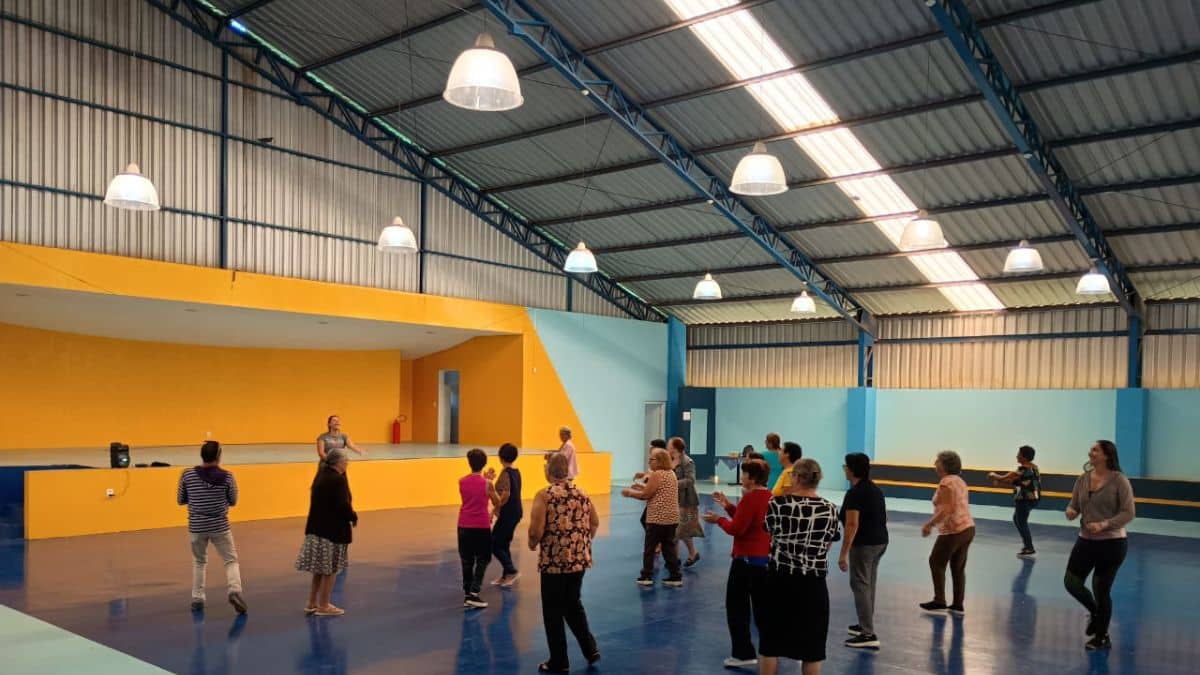 Os frequentadores do Centro de Convivência da Melhor Idade de Ibaté participaram de uma animada aula de dança, com o objetivo de estimular a mobilidade, a coordenação motora e o bem-estar.