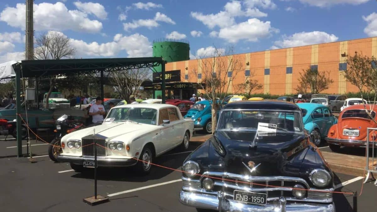 Enquanto aguarda a nova data, o público pode visitar a mostra de carros clássicos no interior do shopping. O Porsche que estava em exibição foi substituído por um Fusca verde de 1974, que agora divide espaço com um Trans Am, em uma exposição especial e temporária que antecipa o clima nostálgico do evento.
