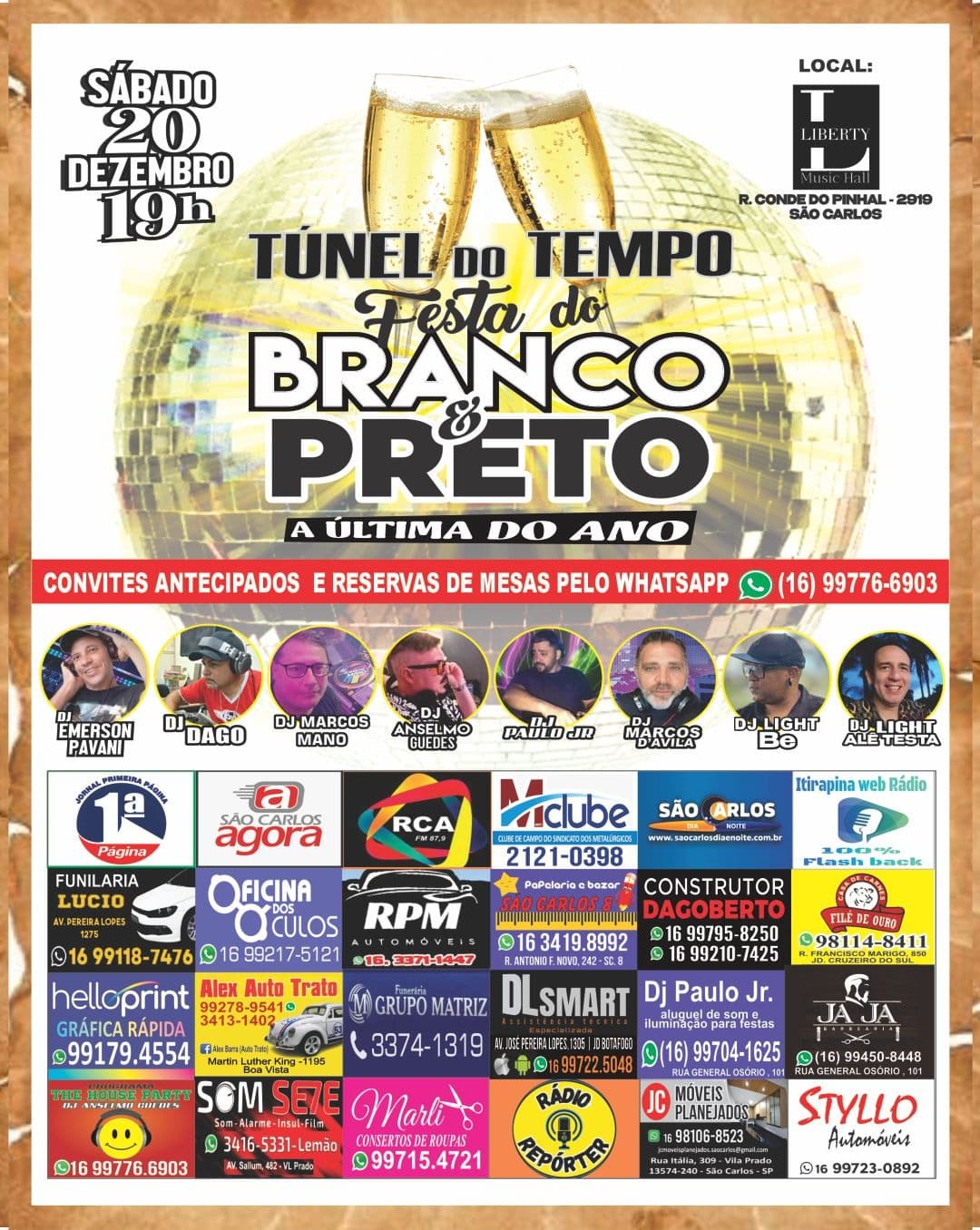 Neste sábado, 20, a partir das 19h, São Carlos vai parar para viver uma noite inesquecível com a Túnel do Tempo – A Noite do Branco e Preto.