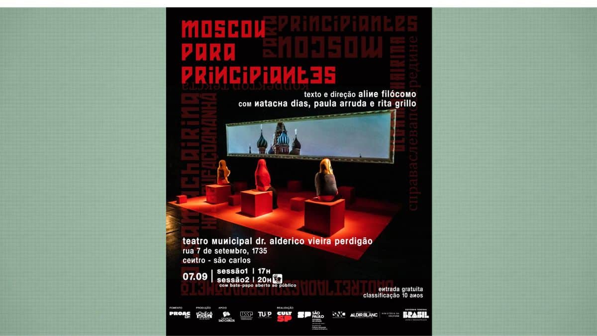Moscou para Principiantes se apresenta neste domingo, dia 7, no Teatro Municipal de São Carlos, como a parceria do Teatro da USP de São Carlos.