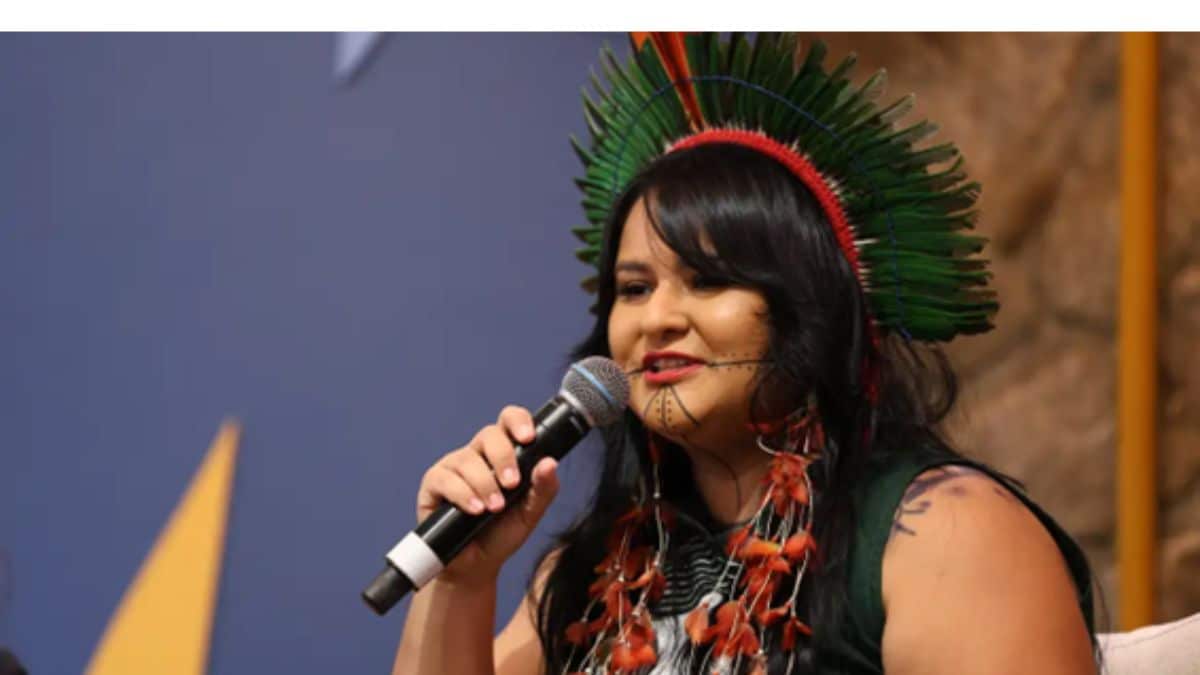 Encerrando a programação especial das autoras da Amazônia, a multiartista Aliã Wamiri Guajajara participou da palestra “Tecnologias do encantamento: entre o artesanal e o digital”. Nascida em Teresina (PI), filha de mãe Guajajara e pai Timbira, Aliã é escritora, curadora, performer e graduada em Artes Visuais pela Universidade Federal do Piauí.