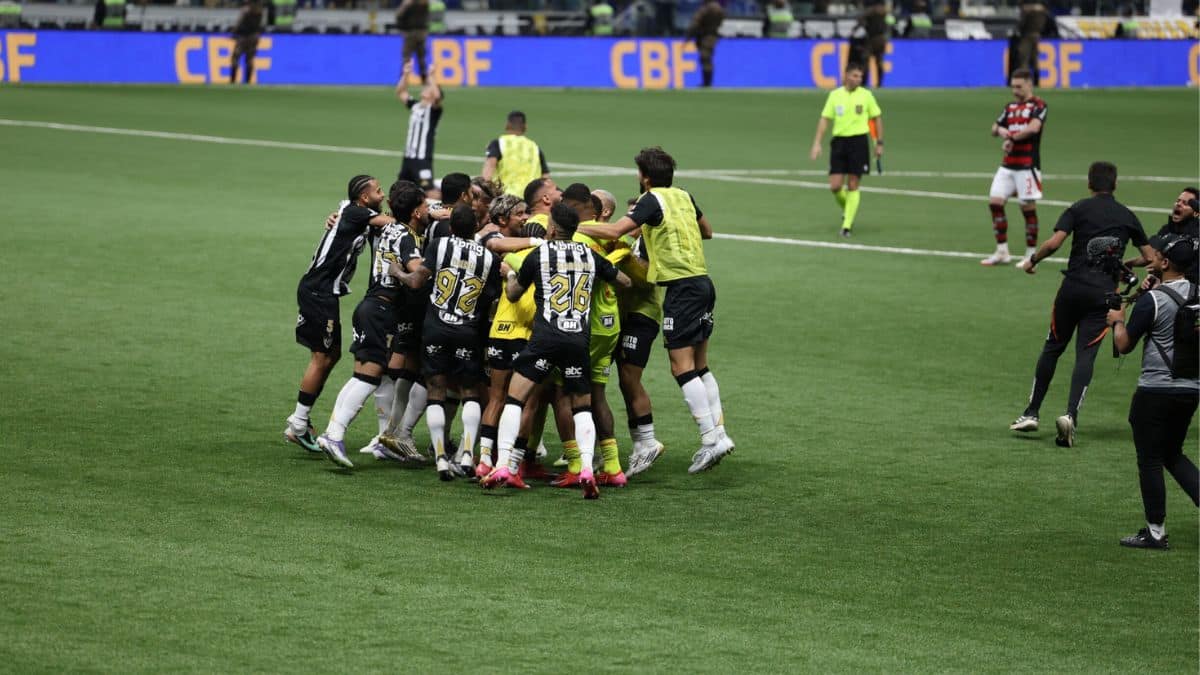 Nas cobranças, Arrascaeta abriu acertando para o Flamengo, Hulk empatou, Jorginho também acertou, Scarpa fez o dele, assim como Saúl, que viu Rossi pegar a batida de Júnior Alonso. Entretanto, a torcida do Atlético voltou a celebrar na batida seguinte, quando Everson defendeu a tentativa de Samuel Lino e Igor Gomes novamente deixou tudo igual. O cenário ficou ainda mais feliz para o time mineiro quando Wallace Yan isolou a quinta cobrança e Everson, como um herói, garantiu a vaga à próxima fase.