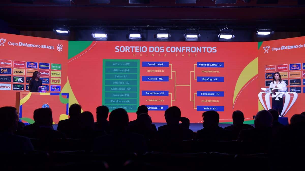 A Confederação Brasileira de Futebol (CBF) definiu na manhã desta terça-feira, 12, os confrontos das quartas de final da Copa do Brasil, bem como o chaveamento dos oito clubes até a decisão da competição. O Corinthians encara o Athletico-PR, que eliminou o São Paulo na última fase, e pode enfrentar Cruzeiro ou Atlético-MG nas semifinais.