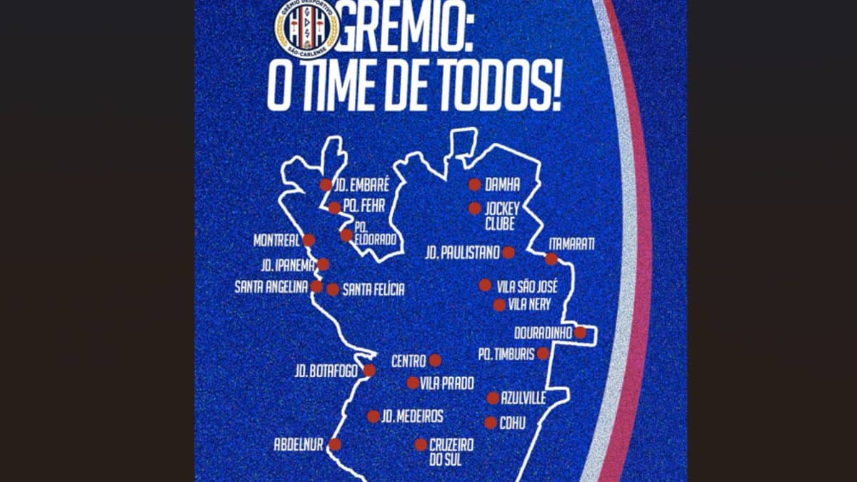 No “mapa” são-carlense das categorias de base, os Lobinhos representam, exatamente, 23 bairros de São Carlos: Jardim Embaré, Parque Fehr, Parque Eldorado, Montreal, Jardim Ipanema, Santa Angelina, Santa Felícia, Damha, Jockey Club, Jardim Paulistano, Jardim Itamaraty, Vila São José, Vila Nery, Douradinho, Parque dos Timburis, Centro, Jardim Botafogo, Vila Prado, Azulville, CDHU, Jardim Medeiros, Eduardo Abdelnur e Jardim Cruzeiro do Sul.