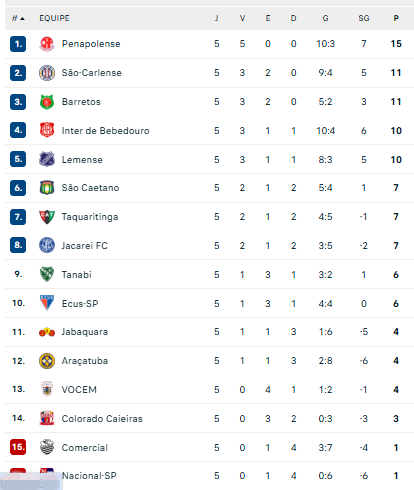 O São-Carlense chegou aos 11 pontos após empatar por 2 a 2 com a Inter de Bebedouro, no estádio Sócrates Stamato. A equipe de Bebedouro ocupa a quarta posição, com dez pontos.