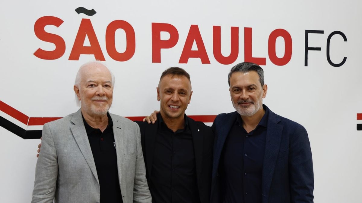 “Venho para fazer o que eu sempre fiz, mas agora sem chuteira. O chamado do São Paulo mexe muito comigo”, falou Rafinha, pela primeira vez como gerente esportivo. “Quero muito ajudar. É o momento certo de estar aqui, estou com o cheiro da grama ainda”