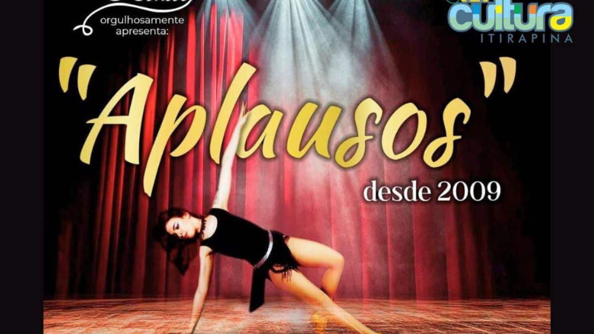 A Prefeitura Municipal de Itirapina, por meio da Secretaria de Educação e Cultura, tem o prazer de convidar toda a população para prestigiar o espetáculo “Aplausos”, apresentado pelo Studio de Dança Aline Hensser. O evento será realizado no dia 9 de maio, às 20h, no Anfiteatro Municipal Monsenhor José Maria Fructuoso Braga, em Itirapina-SP.