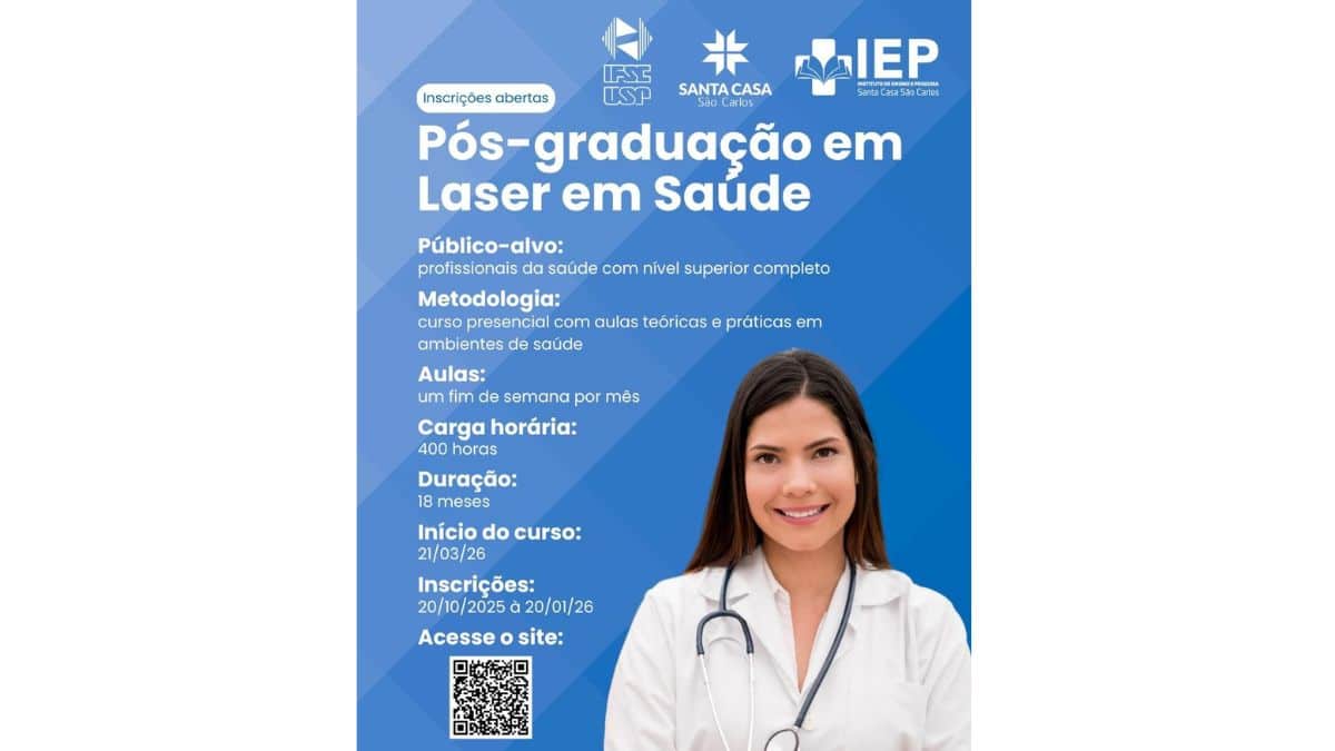 O curso com 360 horas, já tem em andamento 2 turmas, com ampla produção e já está formada uma quarta turma com início em Março/2026. Segundo o Dr. Antonio Aquino, a grande procura pelo curso de Pós-Graduação ocorre não apenas pela necessidade dos profissionais se capacitarem amplamente em laserterapia e terapia fotodinâmica, mas a busca pelo que o Instituto de Física de São Carlos (USP), vem produzindo nos últimos 10 anos. Nesta década, foram mais de 4.000 pacientes atendidos, 60 artigos publicados e 10 livros, tudo isso com o trabalho já em longa parceria entre o IFSC/USP e a Santa Casa de São Carlos, por meio da Unidade de Pesquisa Clínica que, em 2026, trará muitos projetos pioneiros que devem beneficiar ainda mais pessoas.