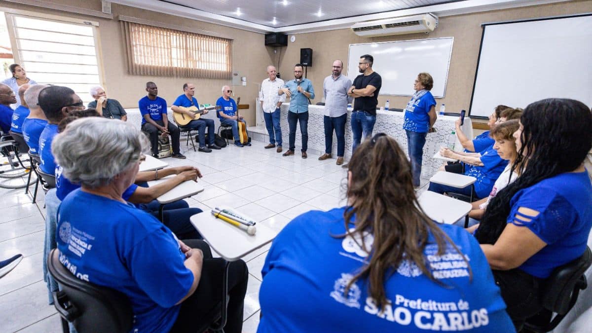 Na tarde da última segunda-feira (28), o prefeito de São Carlos, Netto Donato, visitou o ensaio do coral “Além do Olhar”, realizado na Fundação Educacional de São Carlos (FESC). O grupo, formado por pessoas com deficiência visual, emocionou o público presente com apresentações marcadas por sensibilidade e superação.