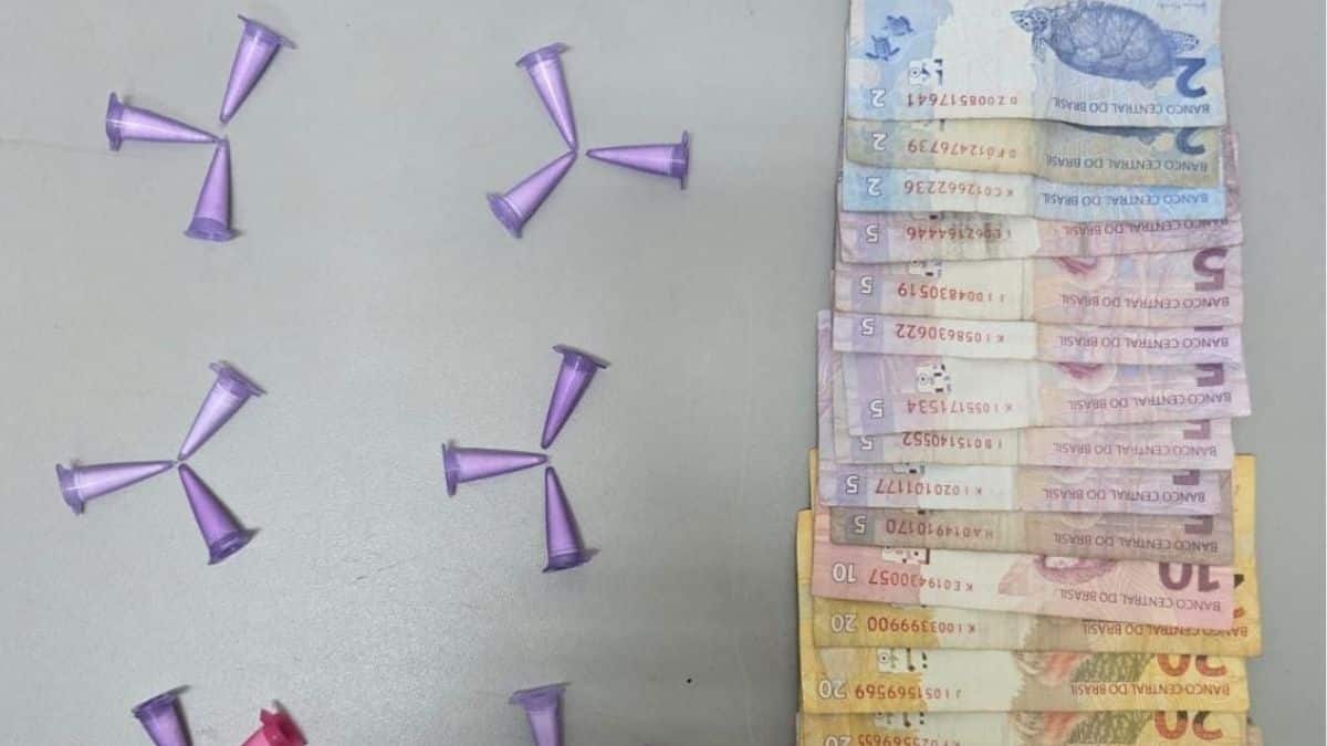 Com o abordado, os agentes localizaram seis microtubos de cocaína e mais de R$ 200 em dinheiro. Em buscas no entorno, outras 14 porções da droga foram encontradas escondidas em um compartimento de serviço público.