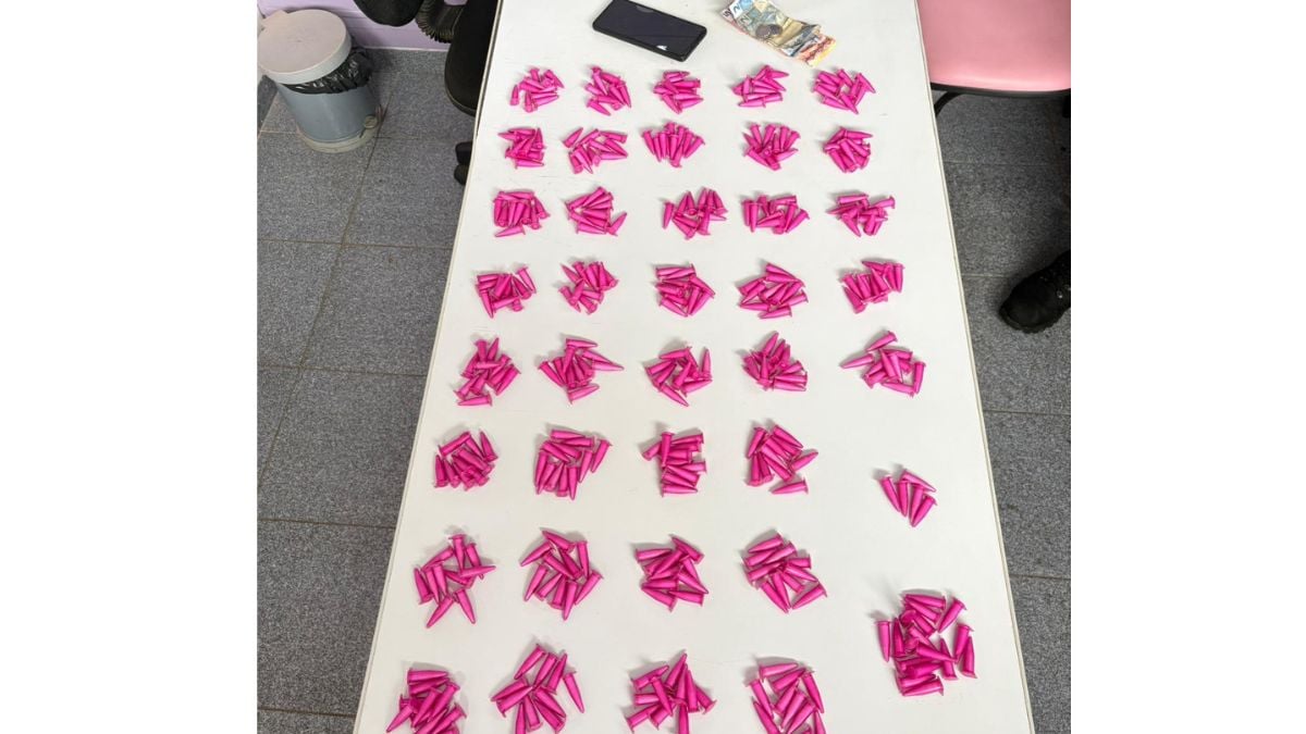 Diante dos fatos, foi dada voz de prisão em flagrante ao acusado, que foi conduzido à Delegacia de Polícia, onde permaneceu à disposição da Justiça. Ao todo, foram apreendidos 392 pinos de cocaína, um celular e R$ 109,00.