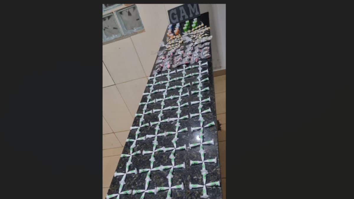 Guardas Municipais do Grupo de Apoio Motorizado (GAM) localizaram aos 4 minutos desta quarta-feira, 30, entorpecentes que estariam abandonados no cruzamento das ruas Juliano Parolo com a Luigi Mazziero, no Jardim Hikare.