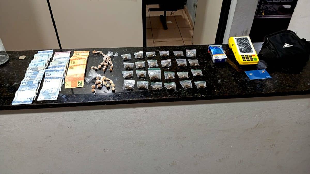 Durante a revista pessoal, os agentes encontraram uma máquina de cartão, cartões de banco, 24 porções de substância semelhante à maconha, 36 porções semelhantes ao crack e R$ 116 em dinheiro.