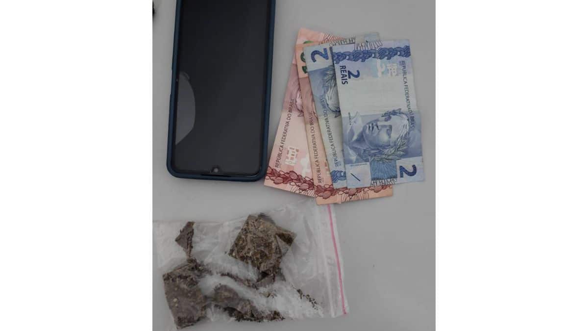Diante da atitude suspeita, os policiais iniciaram acompanhamento e abordaram o motorista do carro. Alterado, tentou justificar o comportamento, mas, durante a vistoria no veículo, os PMs localizaram uma porção de maconha escondida no console.