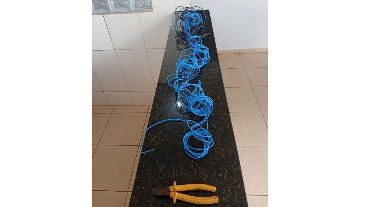 Na revista pessoal, os policiais encontraram dentro da sacola fios de cobre e um alicate, que teria sido utilizado para praticar o crime.