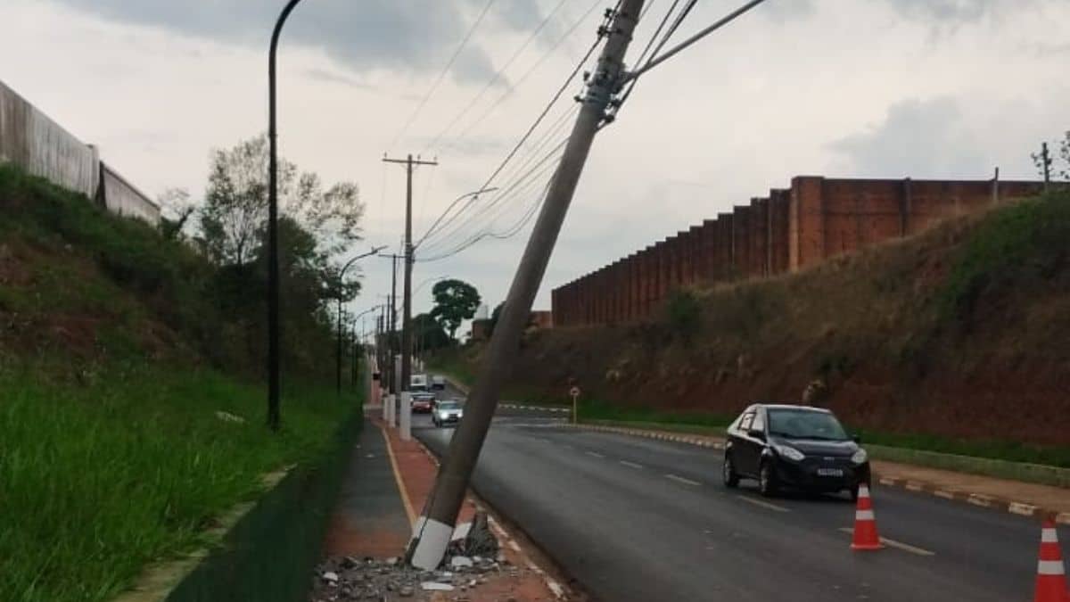 Um veículo colidiu contra um poste nesta terça-feira (05) na Avenida São João, nas proximidades da rotatória que dá acesso ao Distrito Industrial. Após o impacto, o motorista deixou o local.