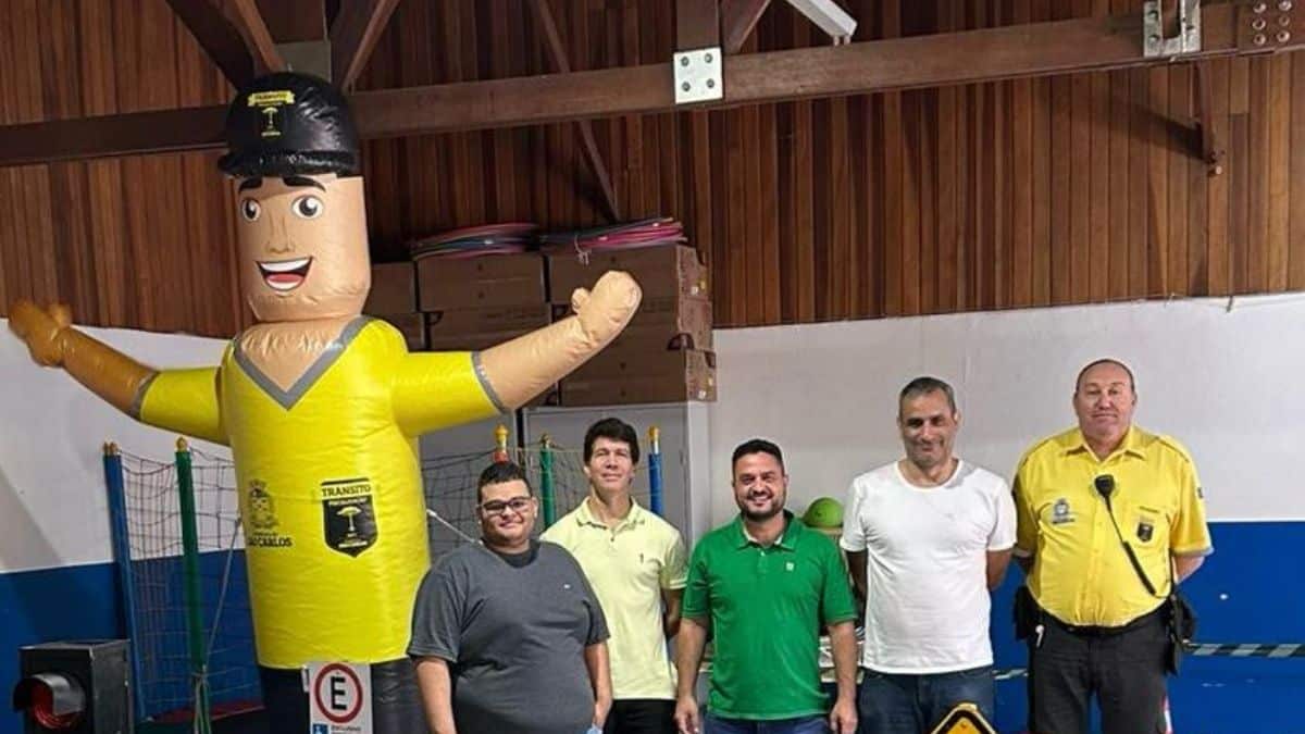 Nesta quarta-feira, 17, o vereador Moisés Lazarine, PL, juntamente com o diretor de Educação de Trânsito, Felipe Almeida, e demais membros do Departamento de Trânsito, estiveram no Cemei Victorio Rebucci, com a minicidade. A atividade de educação de trânsito para crianças simula o dia a dia com semáforo, faixa de pedestres, placas e a utilização de carros, tudo em tamanho menor para que os alunos compreendam a importância do respeito às leis de trânsito.